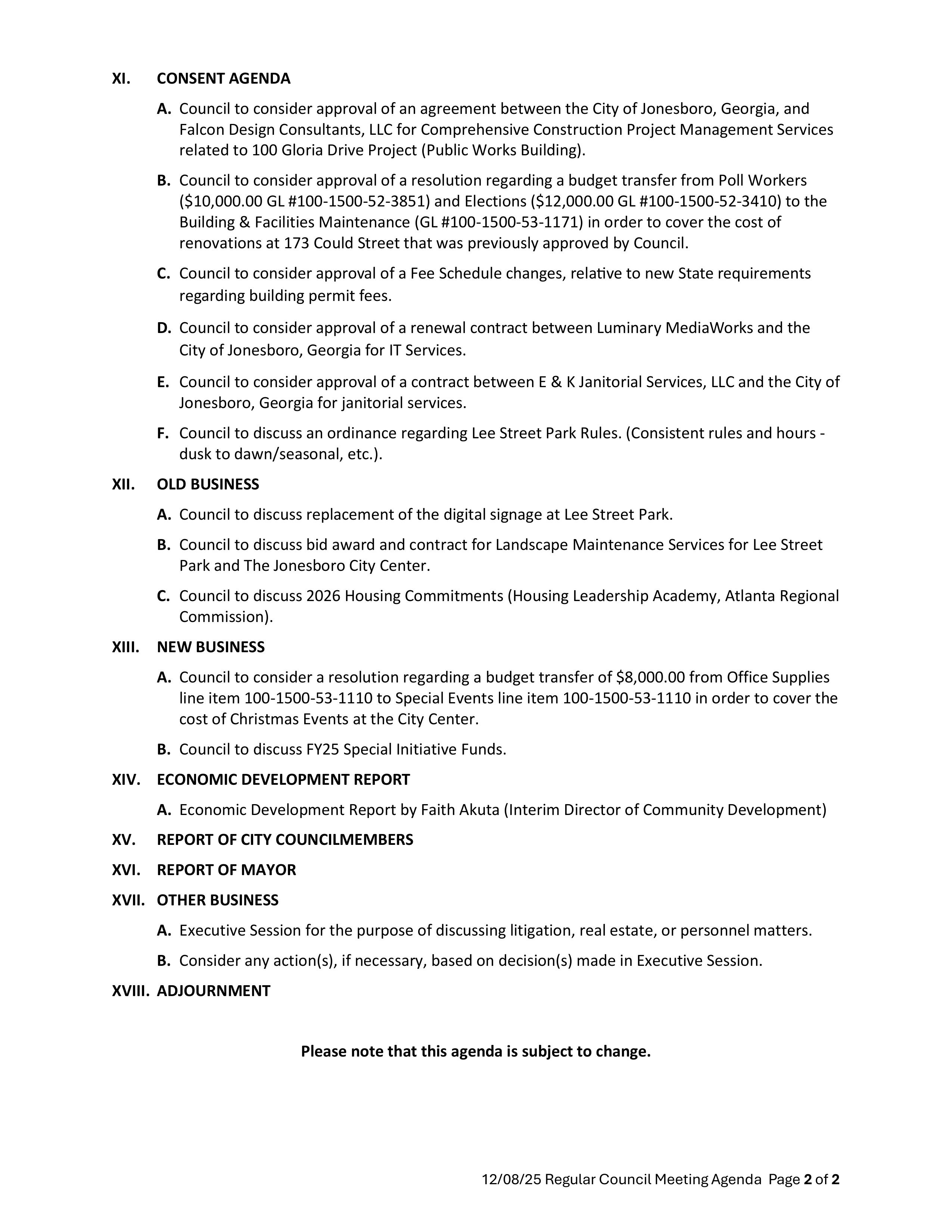 CITY COUNCIL REGULAR SESSION AGENDA DECEMBER 08, 2025
